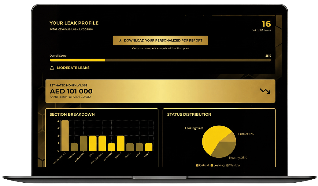 Discover exactly where money is slipping through the cracks in your clinic — and get a prioritized action plan with your specific growth points, problem areas, and projected recovery for the next 90 days.